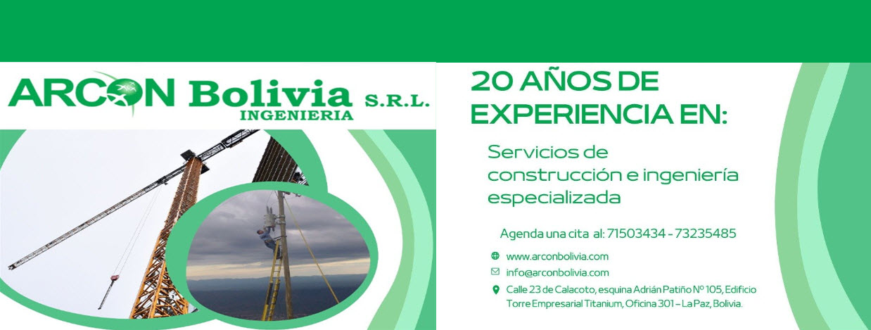Otros registros oficiales: La ejecución de todo proyecto que realiza ARCON BOLIVIA se fundamenta por un sistema integrado de gestión que comparte valores específicos: NIT 309218025